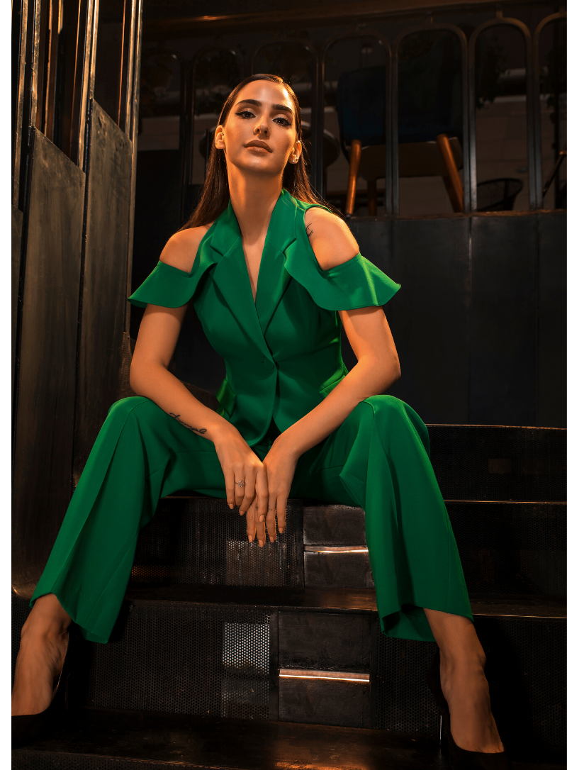 Shamrock green cold shoulder blazer