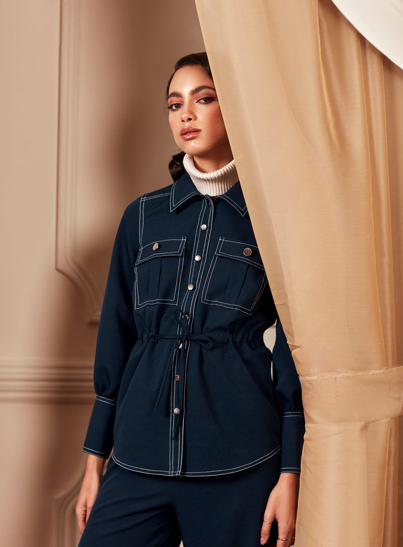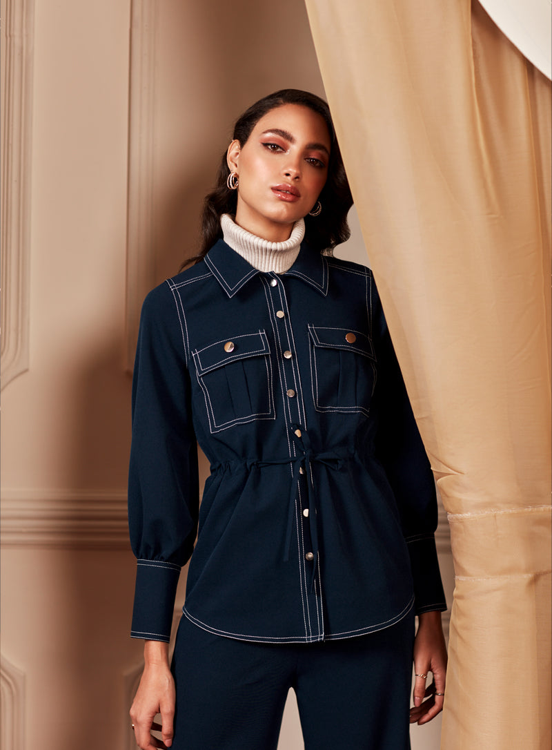 Contrast Visible Top Stitching Detail