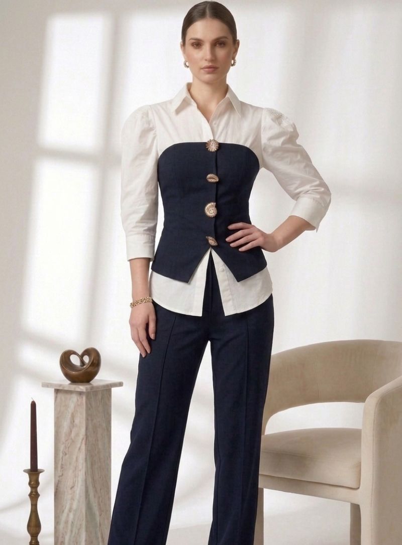 Front placket with gold metallic buttons