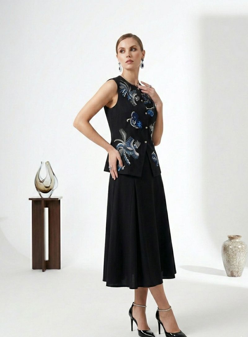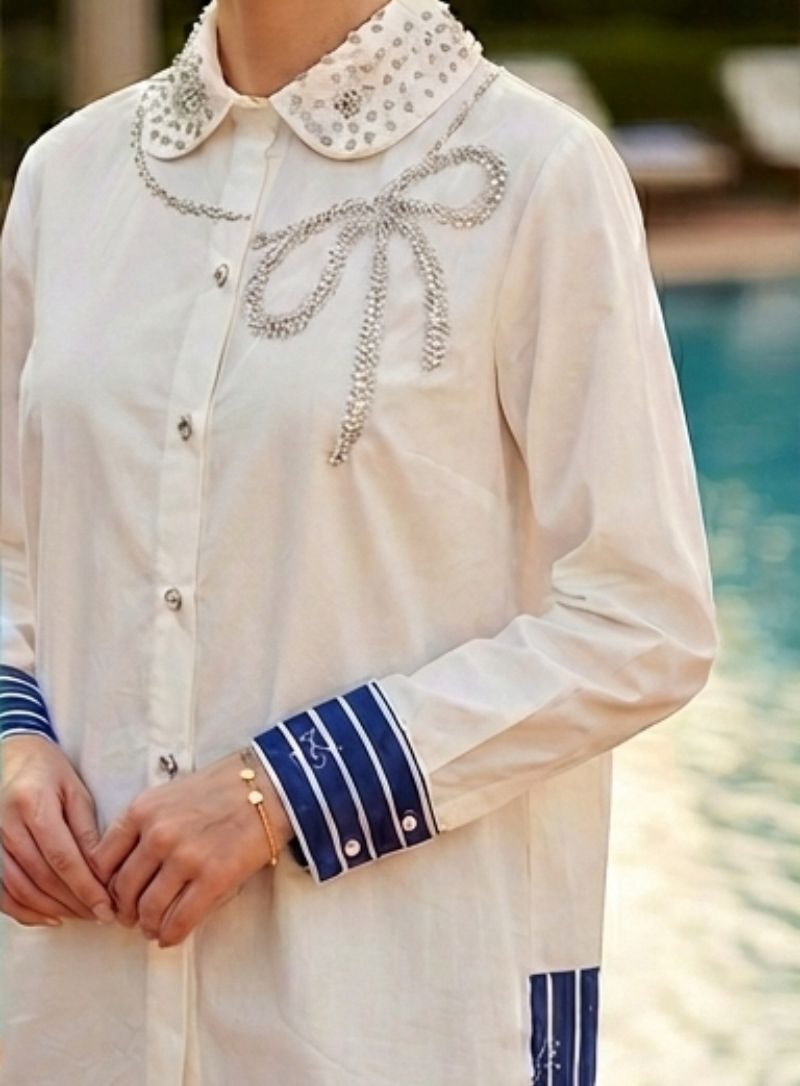 Embroidery highlights at the hem