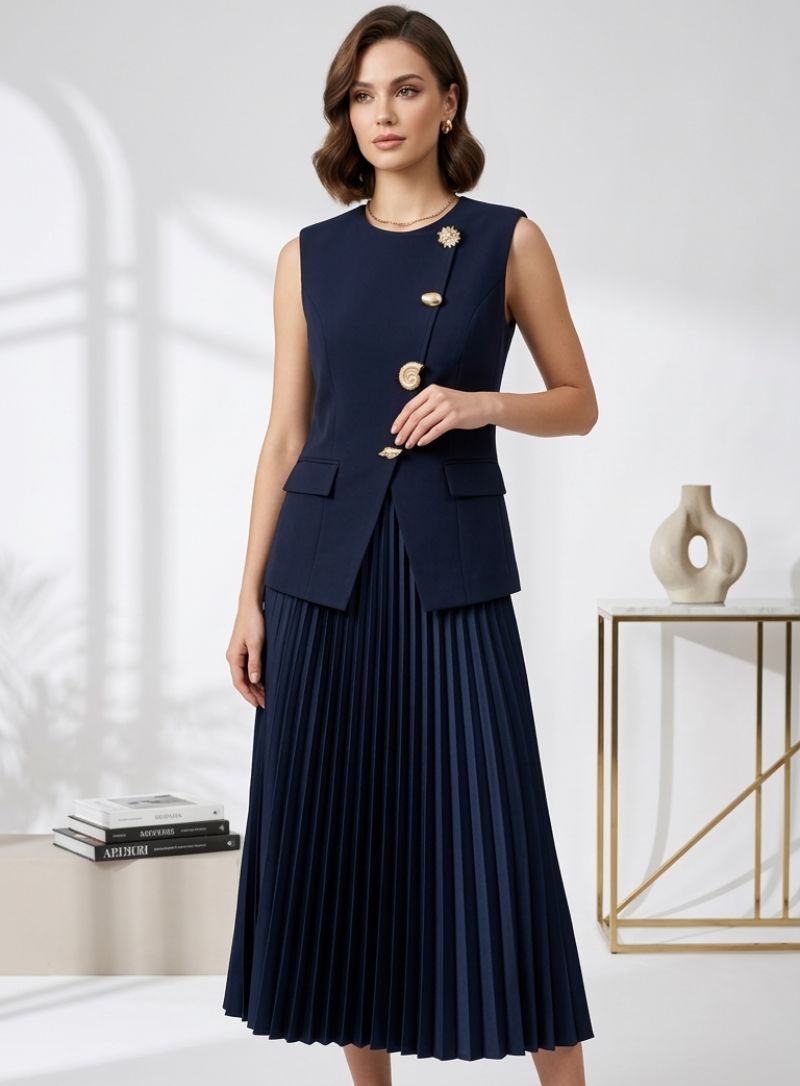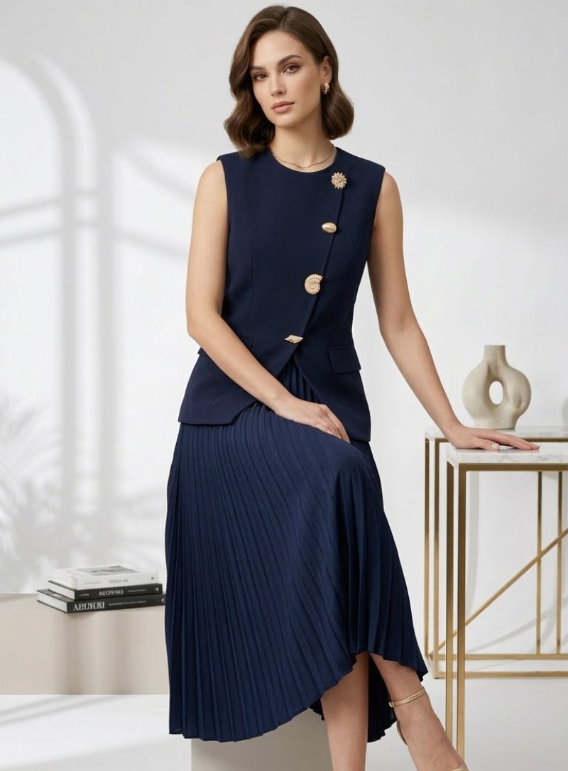 Luna Pleated Co-ord Set (Indigo)