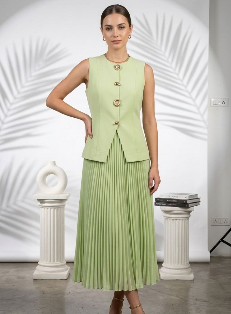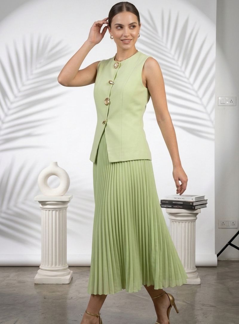 Willow Pleated Co-ord Set (Mint Green)