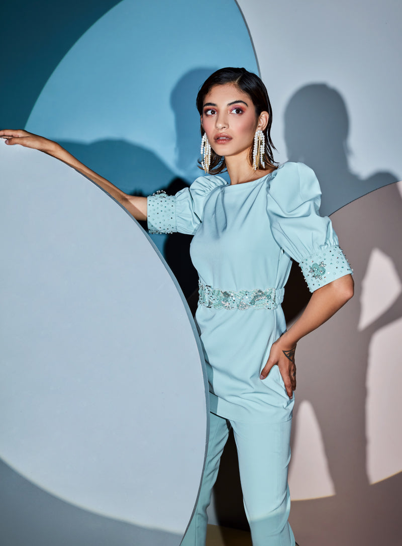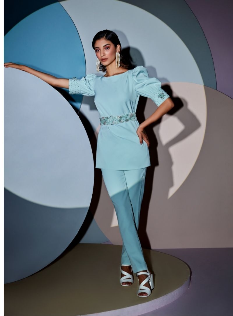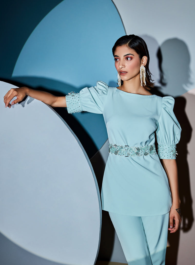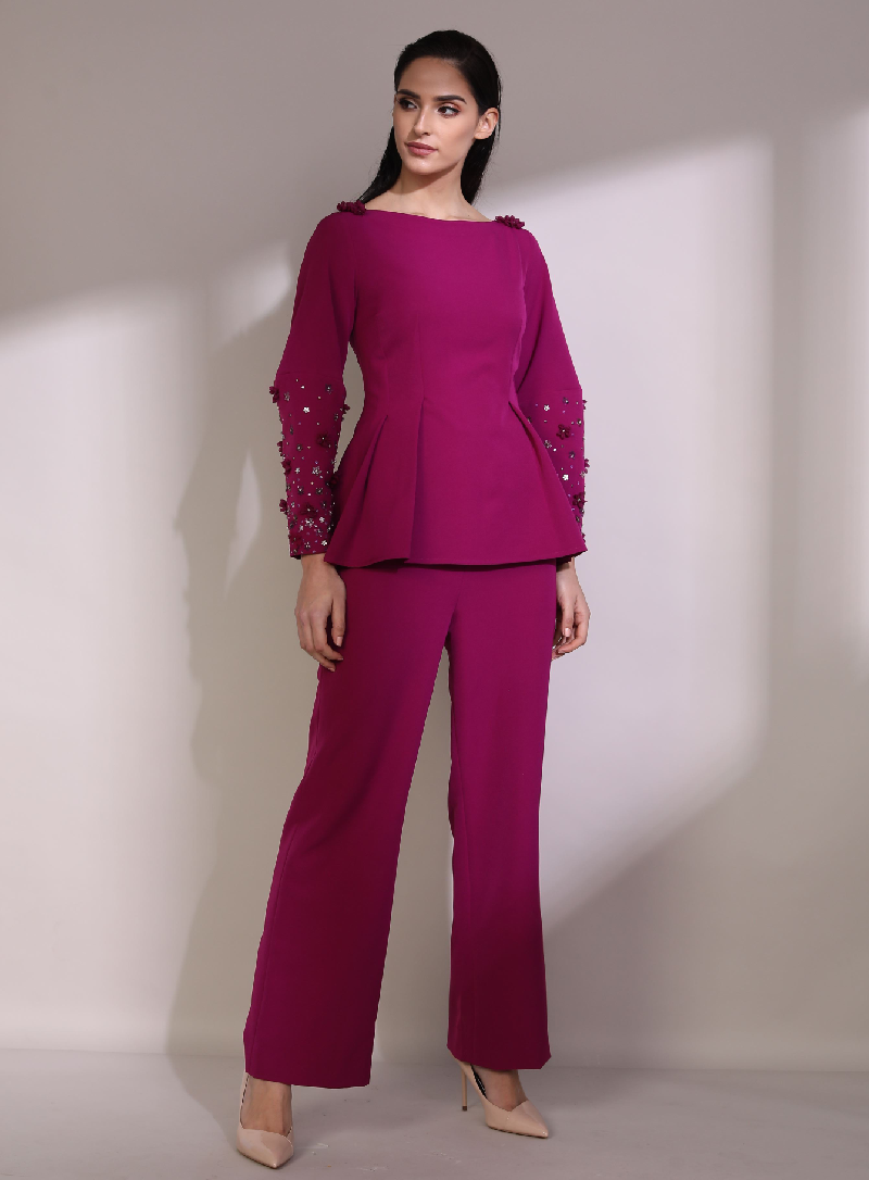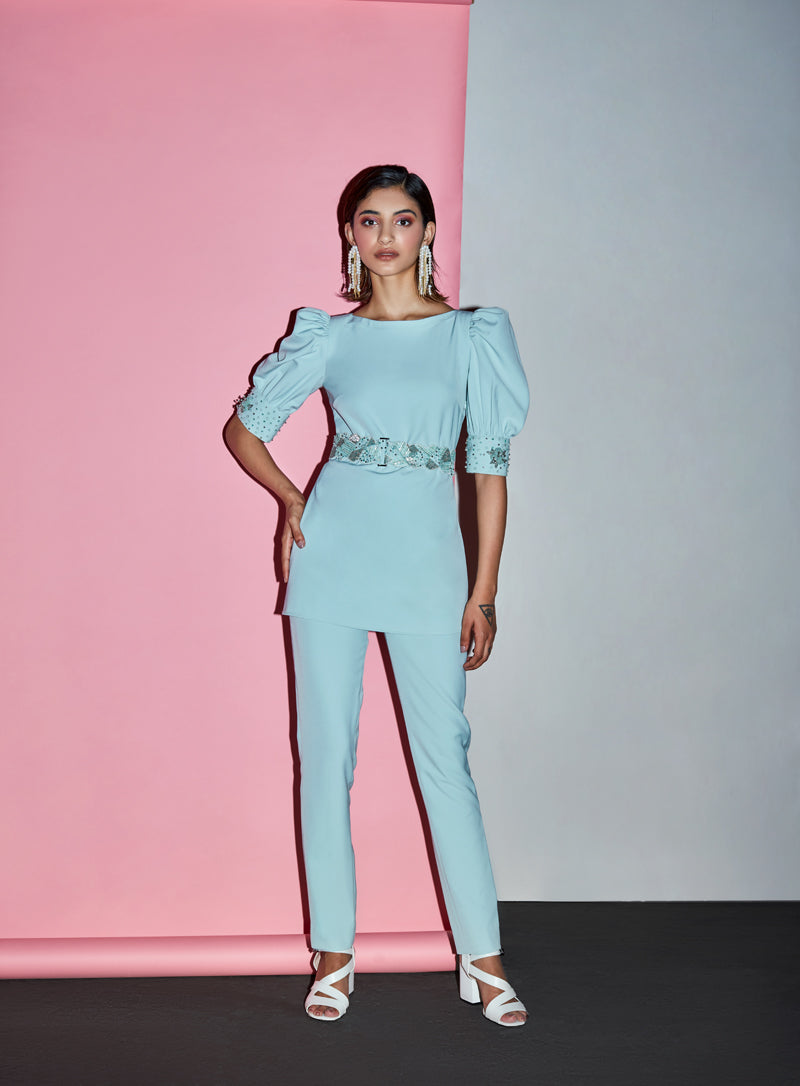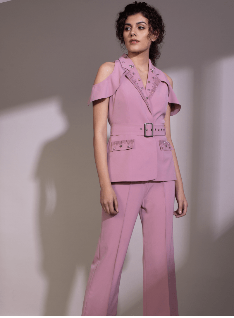 Blush pink cold shoulder blazer set