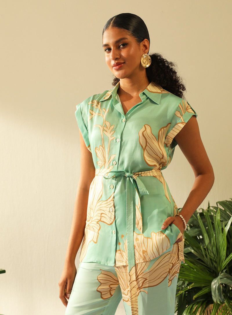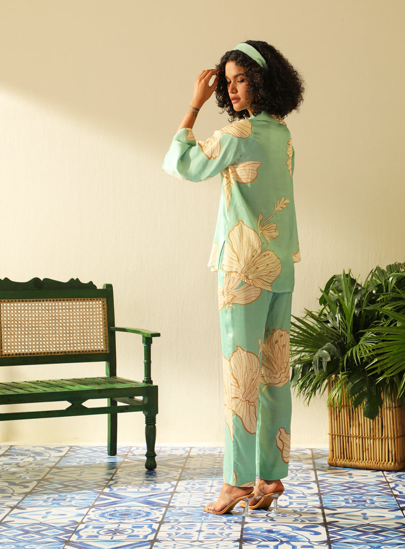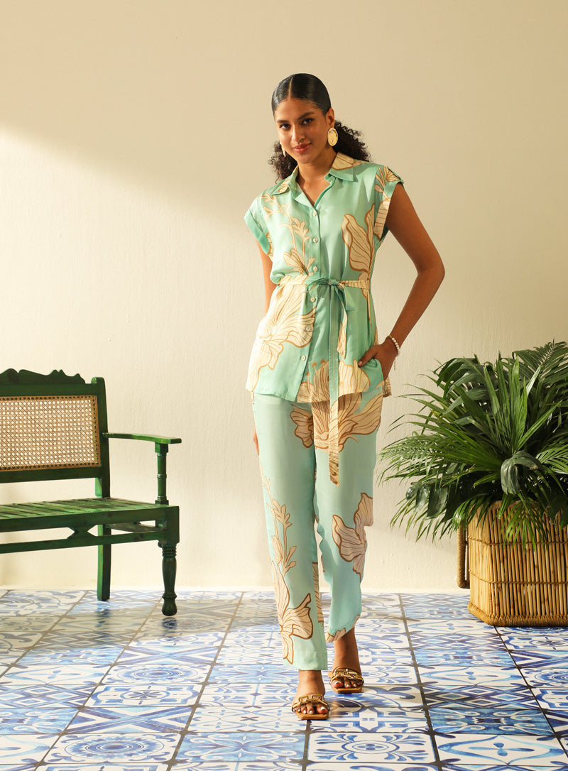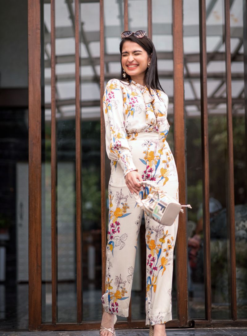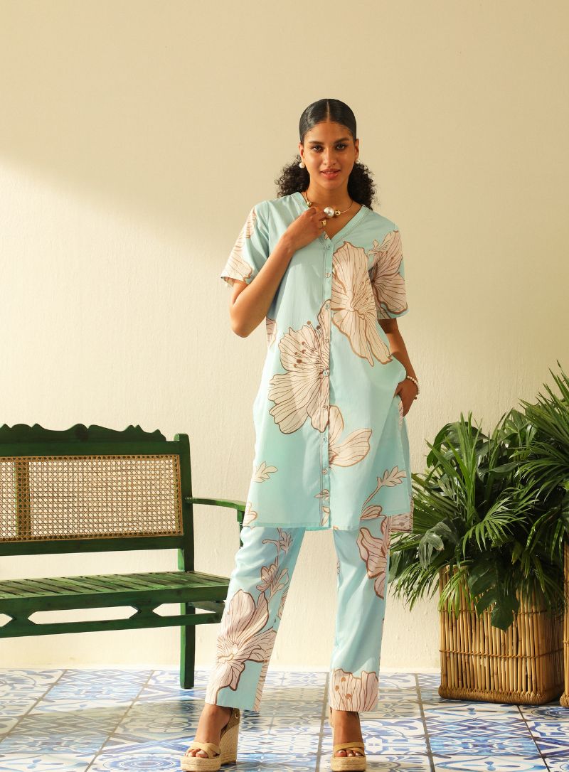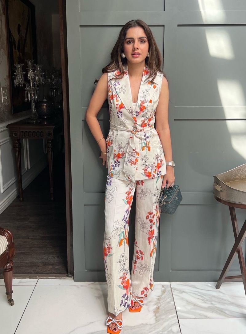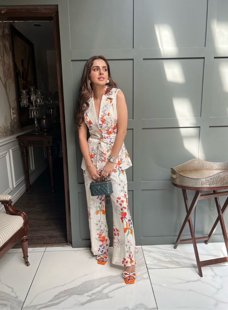 Blush pink cold shoulder blazer set