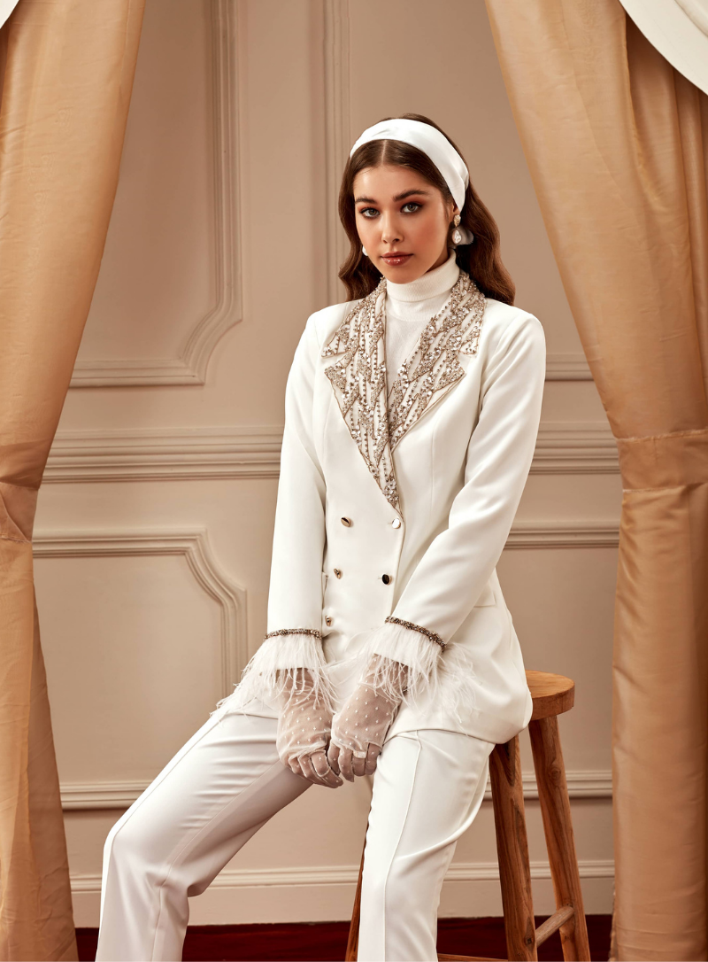 Embellished lapel and flaps