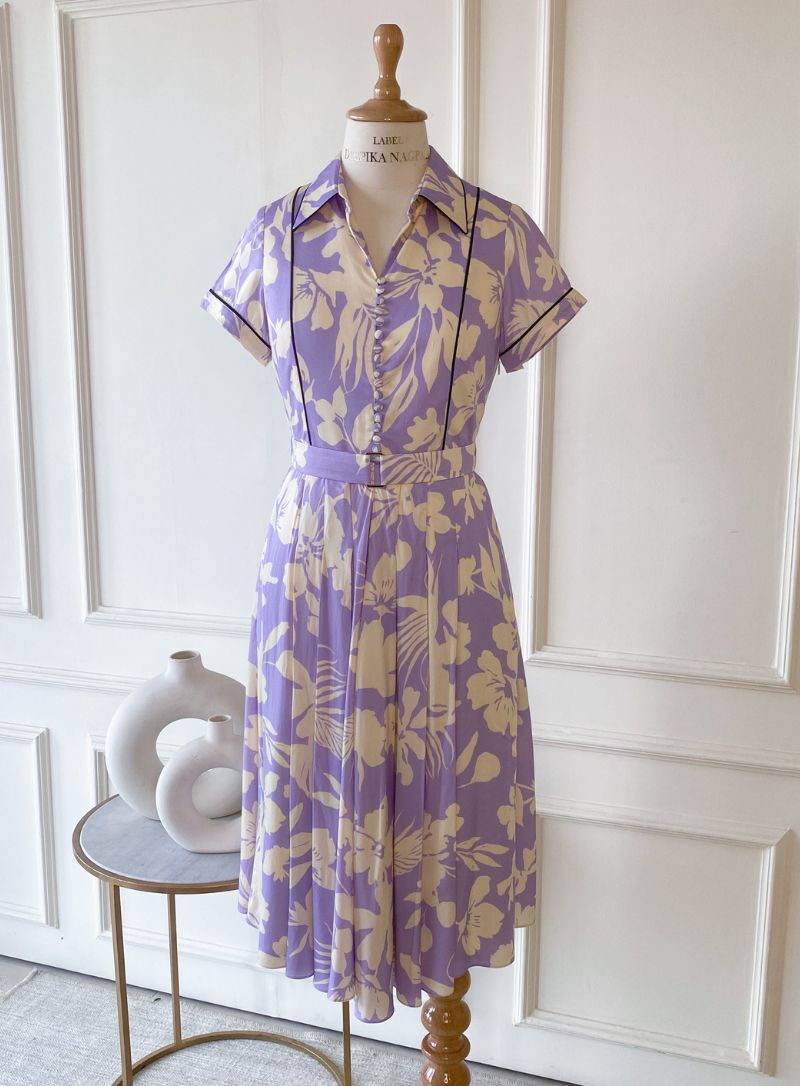 Piping Detail All Over Rouleau Button Shirt Collar Flare At Hem Sleeveless